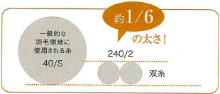 240/2×240/2(数が大きいほど細い)細い糸はより柔らかな風合いを持ちます。